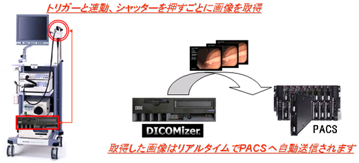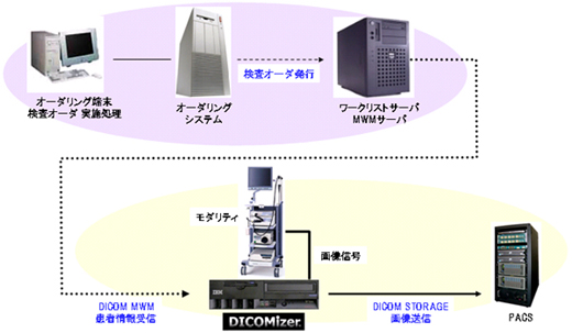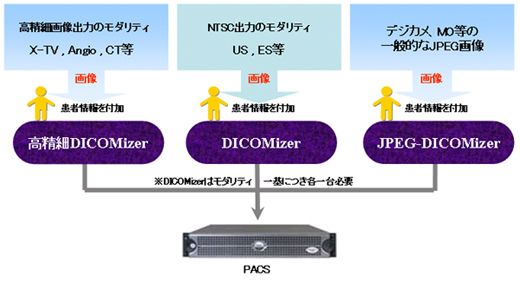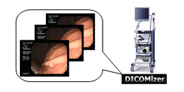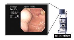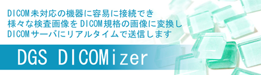 | ■DICOMizer(DICOMコンバータ)は、DICOM未対応の機器に接続し、 検査で取得した画像をDICOM規格に変換し、サーバへ送信する装置 です。 |